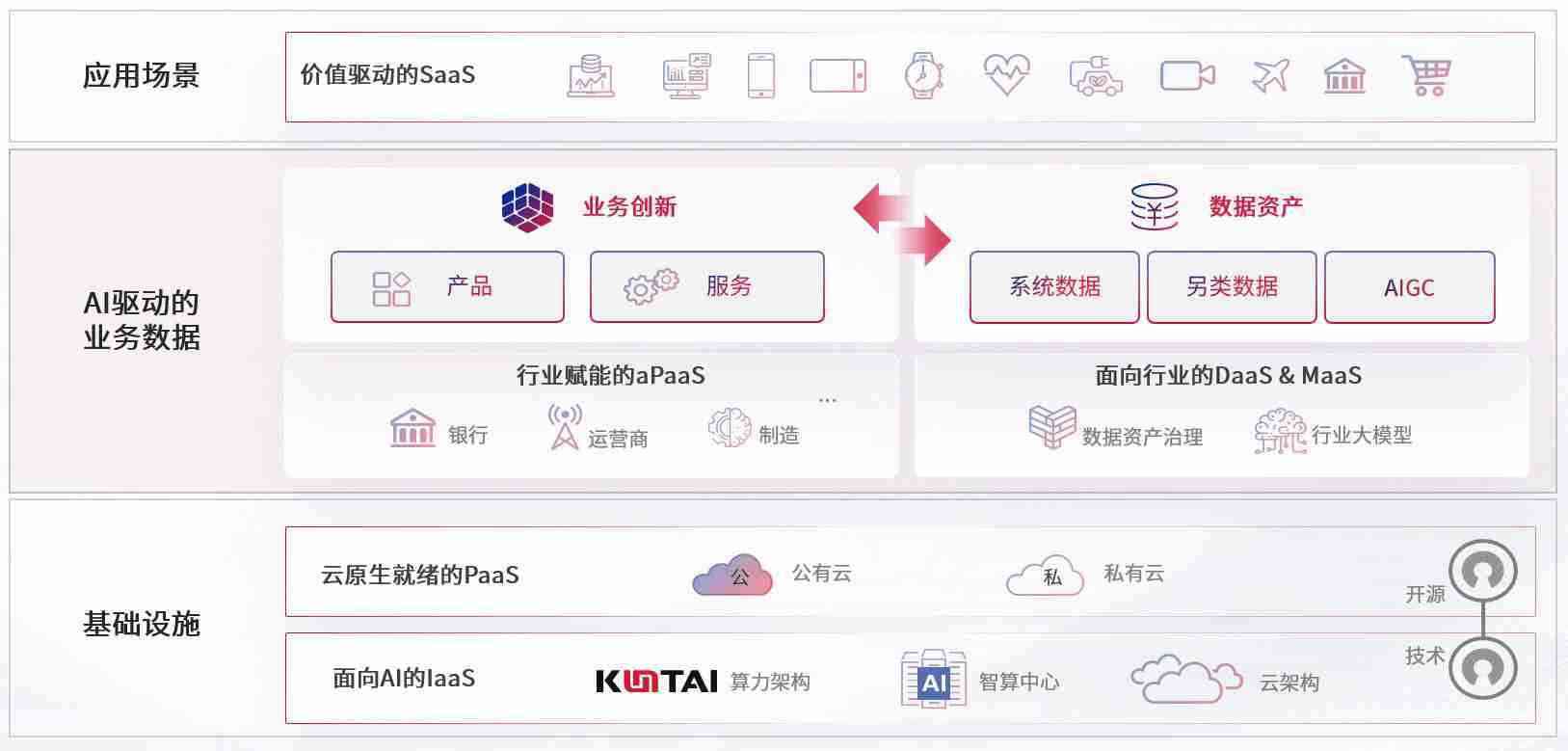 数字时代,,,,围绕企业数字化转型的关键要素,,,益达平台数码开创性的提出数云融合战略和技术体系框架,,,着力在云原生、、、、数字原生、、AI原生和信创产业上架构产品和服务能力,,,为处在不同数字化转型阶段的快消零售、、、汽车、、、、金融、、医疗、、政企、、教育、、、、运营商等行业客户提供泛在的敏捷IT能力和融合的数据驱动能力,,构建跨界融合创新的数字业务场景和新业务模式,,助力企业级客户建立面向未来的核心能力和竞争优势,,全面推动社会的数字化、、智能化转型升级。。